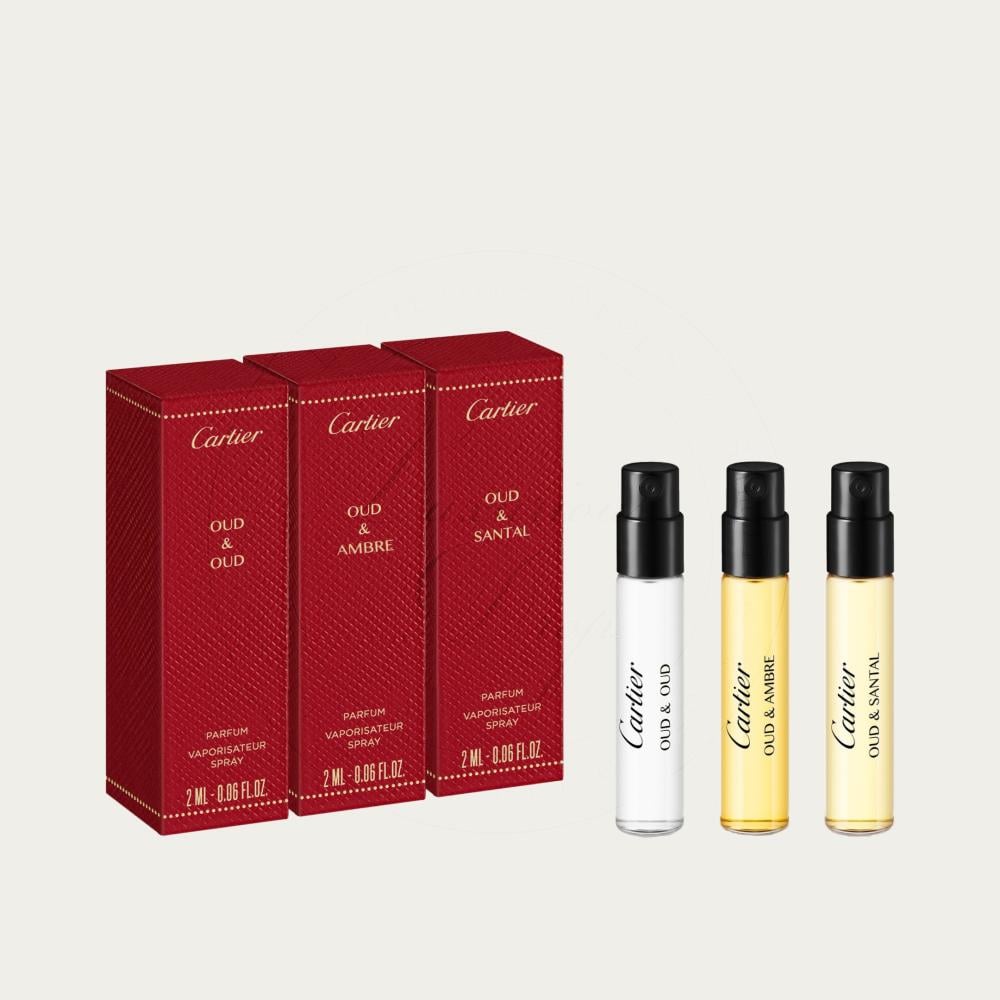 بكج عينات كارتير ليزور ڤواياجوز يتكون من عدد ٣ عينات وحجم ٢مل لكل عينة للعطور التالية:"العود والصندل" و "العود والعنبر" و" العود والعود" ©