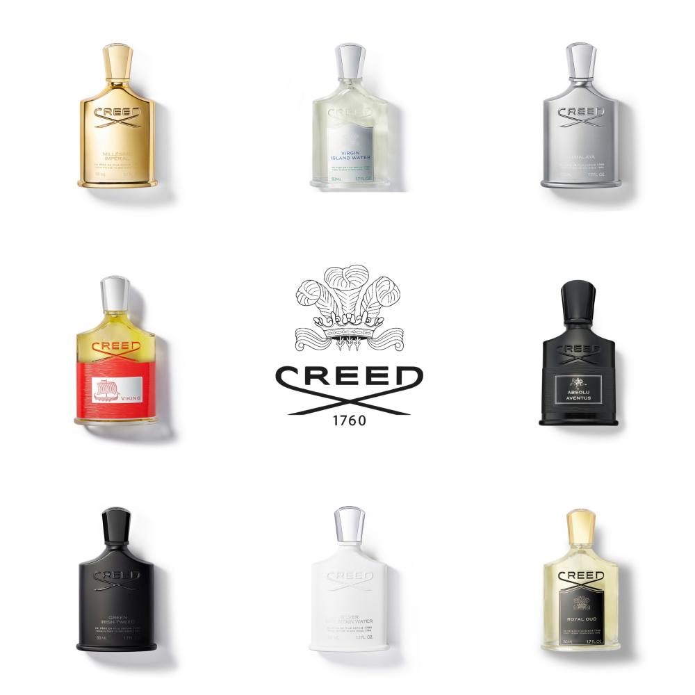 بكج عينات كريد عدد 8 عينات مع حقيبة تسوق وحافظهRoyal oudHimalayaMillesime imperialSilver Mountain Water Aventus AbsoluVikingGreen Irish tweedVirgin island water